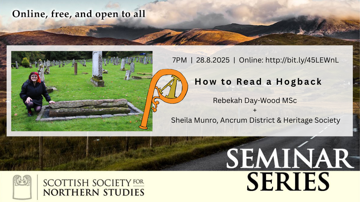 The SSNS Seminar Series continues on Thursday 28 August 2025 with a talk by Rebekah Day-Wood with her talk titled ‘How to Read a Hogback: A beginners guide to the unique carved stones of Viking age Britain